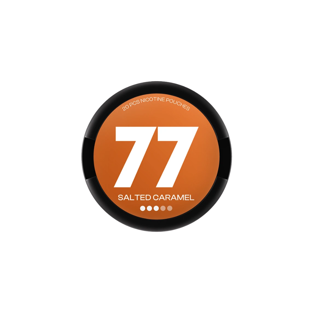 Meet the 77 Salted Carmel nicotine pouches in a medium version. The combination of caramel with a slightly salty finish provides a pleasant taste experience, and the easy and fully discreet method of application makes it possible to take pouch 77 anywhere.