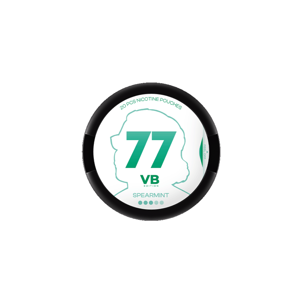 Experience the refreshing burst of 77 VB EDITION Spearmint Medium! With 10.4 mg of nicotine per pouch, enjoy a strong, smooth minty sensation without tobacco. Elevate your experience today!
