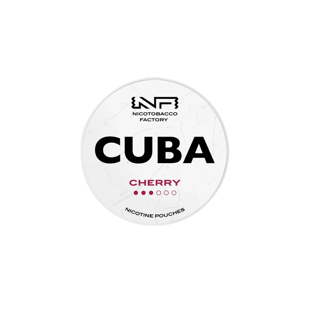 CUBA White Cherry nicotine pouches offer a delightful cherry flavor combined with a nicotine strength of 10 mg per pouch, providing a satisfying experience for regular users. Each can contains 20 slim-format pouches, designed for discreet use without staining teeth.